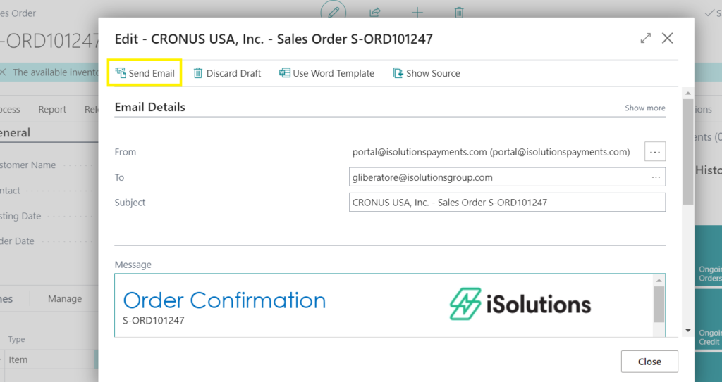 Sending sales order confirmations saves time for both the merchant and customer. The iSolutions app created this convenient feature to allow a customer to approve a sales invoice and pay it online. Here’s how to do it: